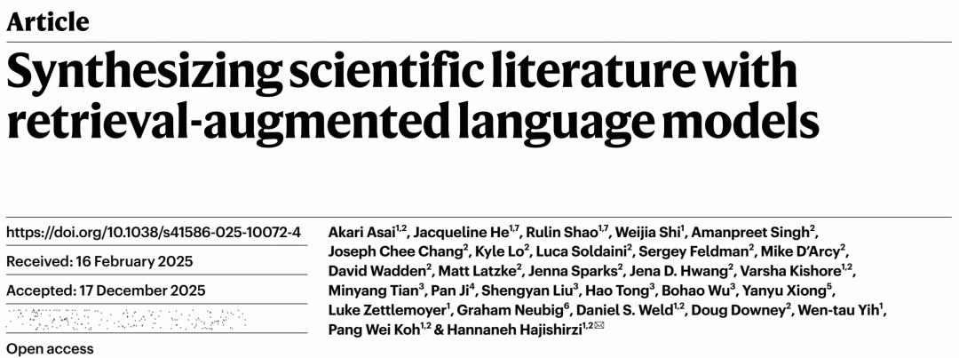 2月4日,Nature刊登了一项由华盛顿大学与艾伦人工智能研究所主导研发的科研成果——OpenScholar。这是全球首个专为科学研究设计的、全开源的检索增强生成(RAG)语言模型。它不仅能精准检索、拒绝幻觉,更能生成高质量的引用式回答。