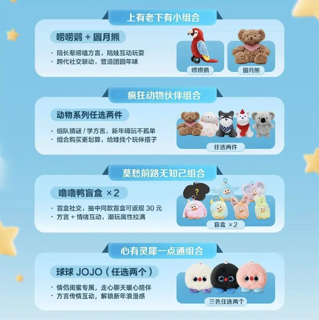 唠唠鹦 + 圆月熊组合,满足跨代、“隔辈亲”的互动;