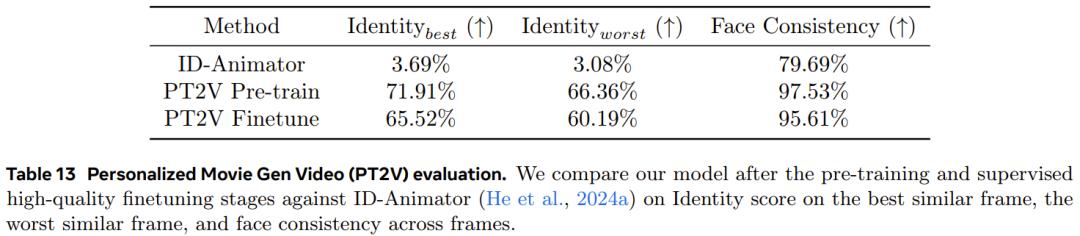 结果上看,在经过微调之后,PT2V 模型在身份和人脸一致性上的表现都相当卓越。
