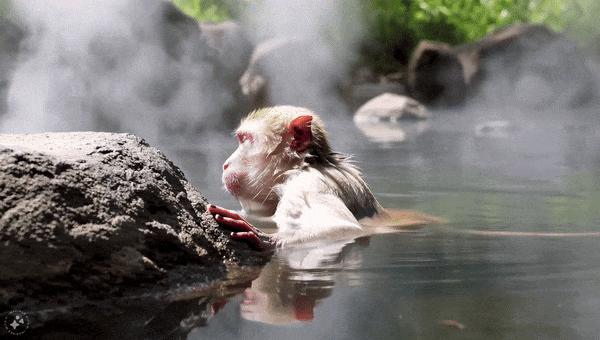 prompt:一只红脸白毛的猴子正在天然温泉中沐浴。猴子在玩水面上的一艘微型帆船,这艘帆船由木头制成,配有白色的帆和小舵。温泉周围环绕着郁郁葱葱的绿植,有岩石和树木点缀其间。