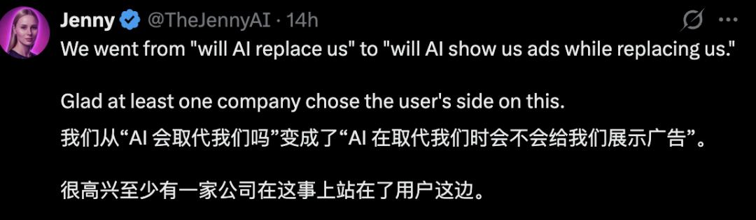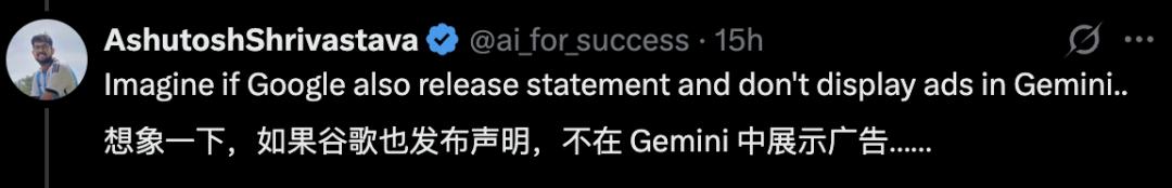 这一下就等于把OpenAI架在火上烤了,「是否加广告」上升到了「是否会损害用户利益」的道德制高点上。