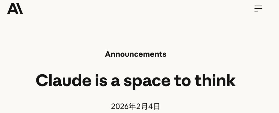 除了在电视上狂砸钱,Anthropic在自家博客上也同步「补刀」,为自己Claude模型立下人设:他们将其定义为「思考的空间」(A space to think)。