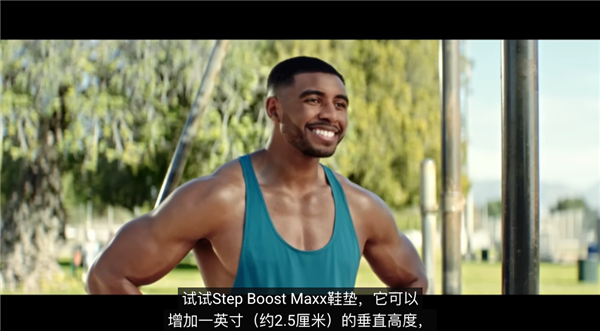 广告里,一哥们问拟人化的 AI 怎么才能练出六块腹肌,结果报了自己的年龄、身高和体重之后,AI猝不及防地推销起了 “ Step Boost Max ” 的增高鞋垫。。。