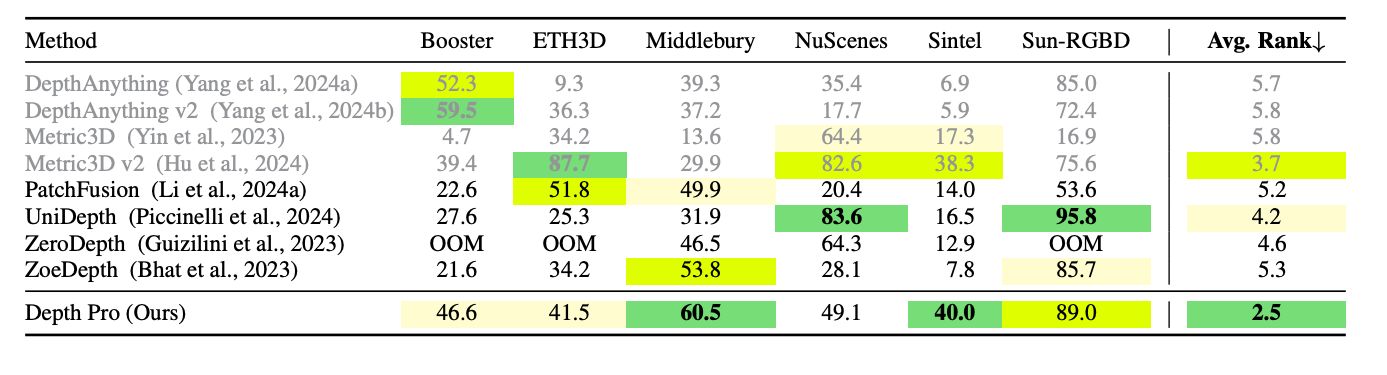 Depth Pro 真正与众不同之处在于它能够估计相对深度和绝对深度,这一能力被称为“度量深度”(Metric depth)。