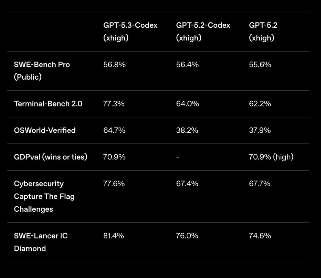 OpenAI表示,GPT-5.3-Codex在SWE-Bench Pro上实现了SOTA。