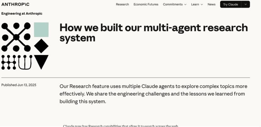 这个说法最被刺痛的就是大名鼎鼎的Anthropic。Cognition的文章发出来不到24小时,Anthropic就发布名为《我们如何构建多智能体研究系统》的报告予以反驳。Anthropic认为多智能体系统可行且强大,尤其适合可并行、可分解的任务,虽然说确实在协同上会遇到挑战,但是可以通过一系列手段去规避。