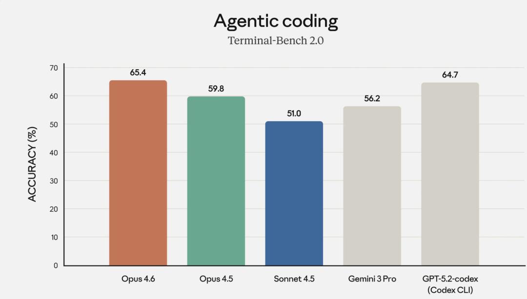 Opus 4.6在Terminal-Bench 2.0中拿到了最高分。