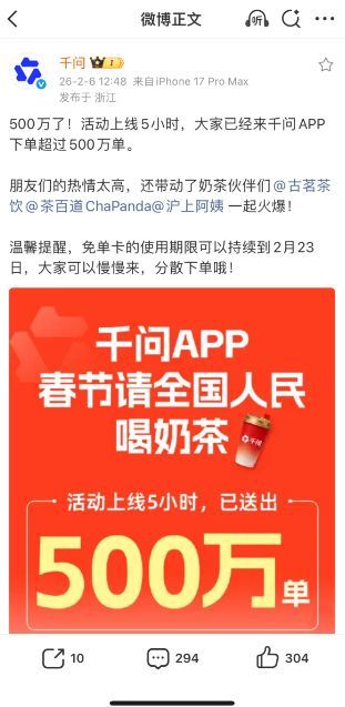 千问首战“冰与火”:卡顿、封链VS疯抢奶茶免单卡
