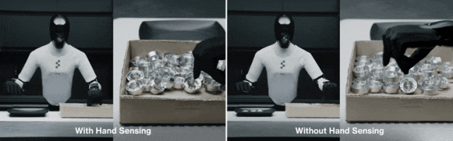 这些感知能力真正释放了五指灵巧手的潜力,让Helix能应对需要多指精细控制的复杂操作。