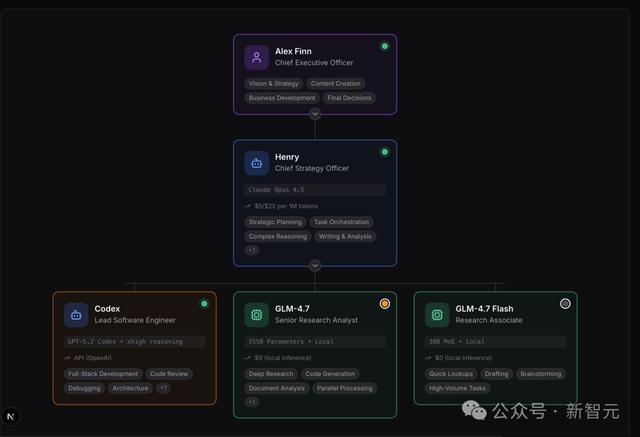 目前,Alex有2名员工在岗(本地部署在Mac Studio上),2名员工外包(Opus 4.6与Codex 5.3)。那2名本地员工全天候为他工作。