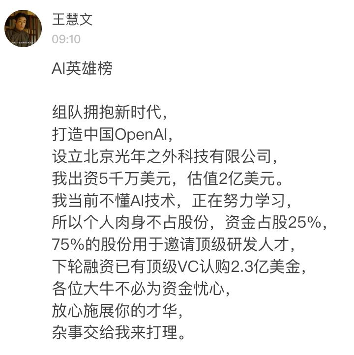 聊完一圈后,觉得还是自己得搞,一力拉起光年之外,剑指打造中国的OpenAI。