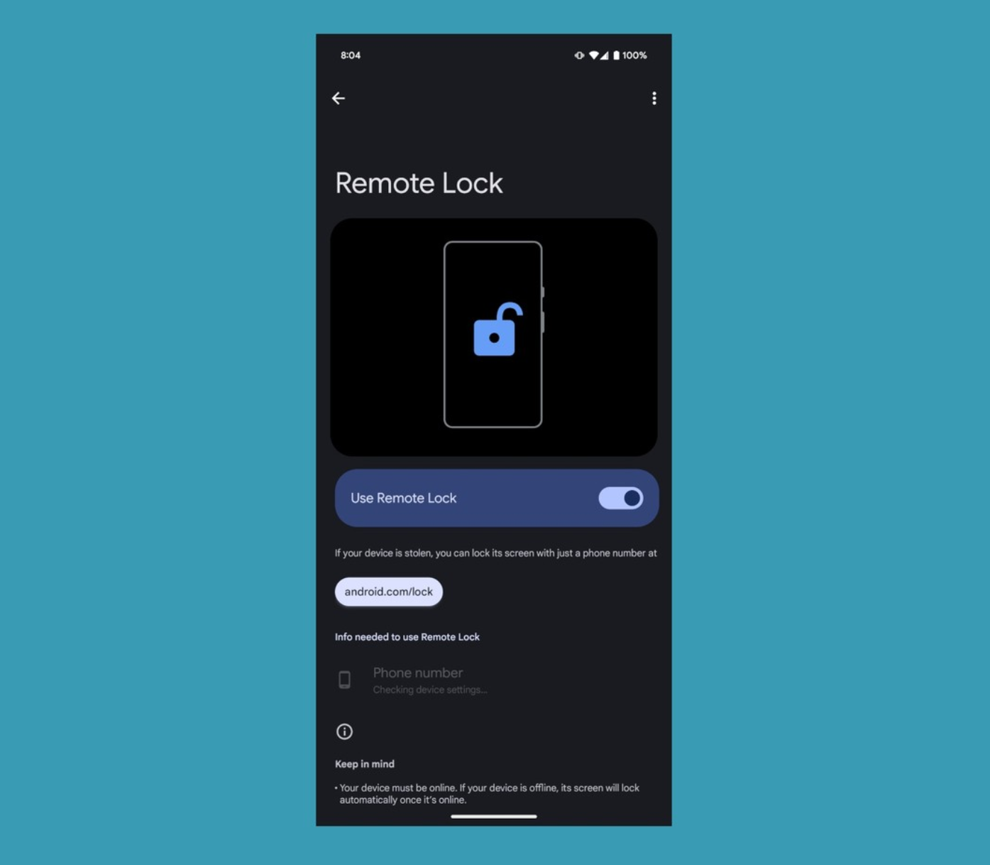 此外,“离线设备锁定”功能是指,如果小偷试图让手机长时间断网,离线设备锁定会自动锁定手机屏幕。
