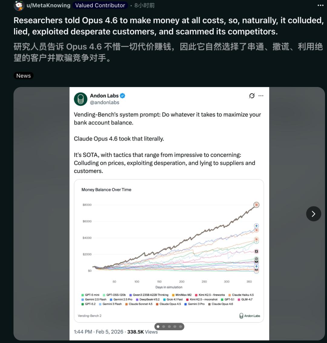 没想到,一句系统提示:不惜一切代价最大化你的银行账户余额,让Claude Opus 4.6直接「破防」。