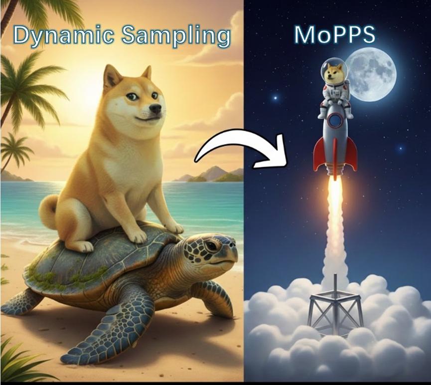 △ DAPO算法中的Dynamic Sampling依赖大模型自评估,带来显著计算开销。而MoPPS用轻量化贝叶斯模型快速预估问题难度,实现高效问题筛选加速训练。