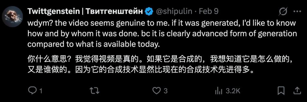 不过也有一些网友并不买账,认为这个视频质感实在太好,不像 AI 生成。