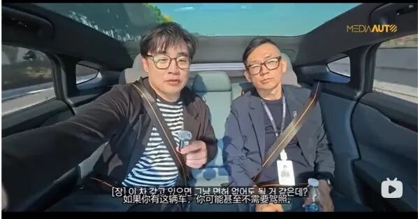 韩国人体验中国无人驾驶已经成为韩网的流量密码(图源:Bilibili)