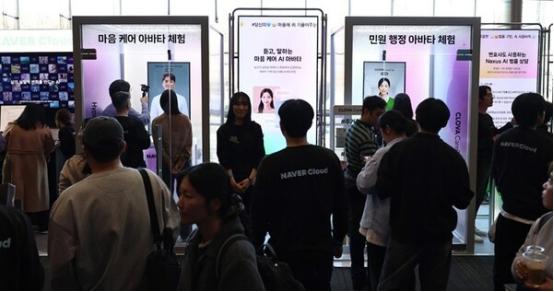 首尔江南区COEX会展中心礼堂举办的发布会上,观众们正在体验NAVER Cloud的读者AI模型(图源:NEWS1)