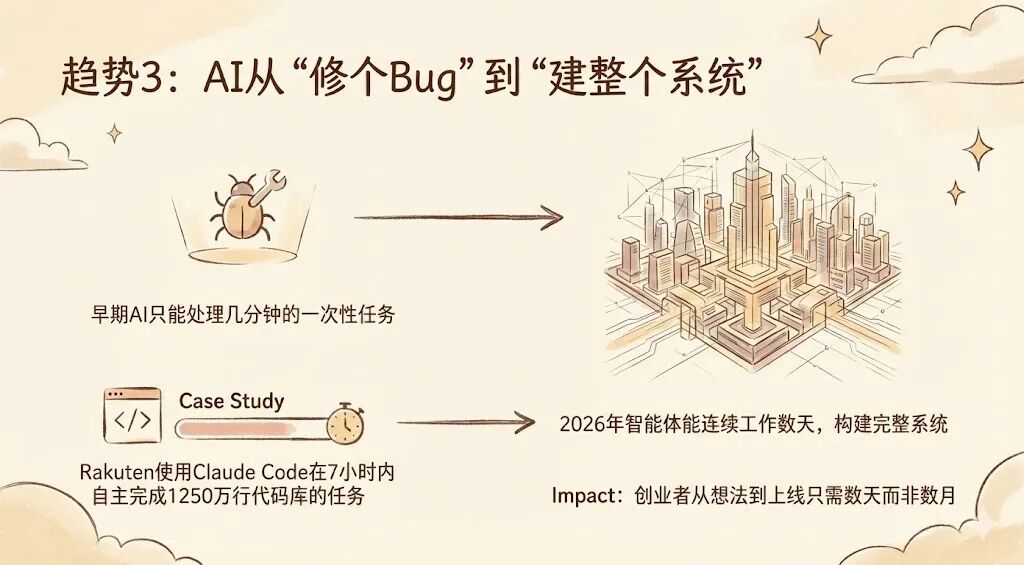 早期的AI Agent只能干几分钟的活:修个Bug、写个函数、生成个测试。