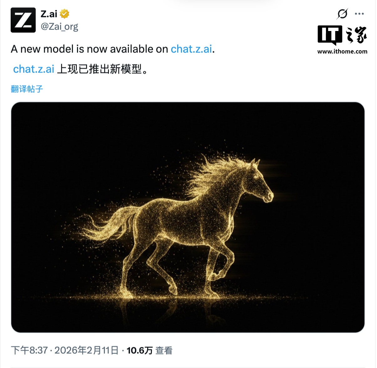 IT之家查询获悉,目前新模型已在 chat.z.ai 平台上线。