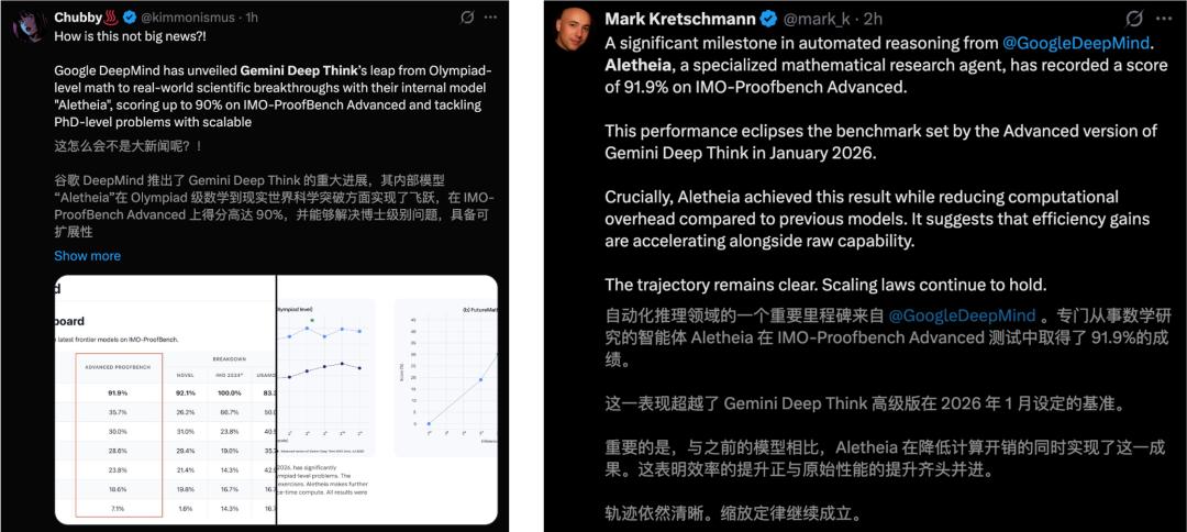 在研究级数学的实战中,Aletheia的实力可不是闹着玩的,已取得了许多令人瞩目的「自主突破」。