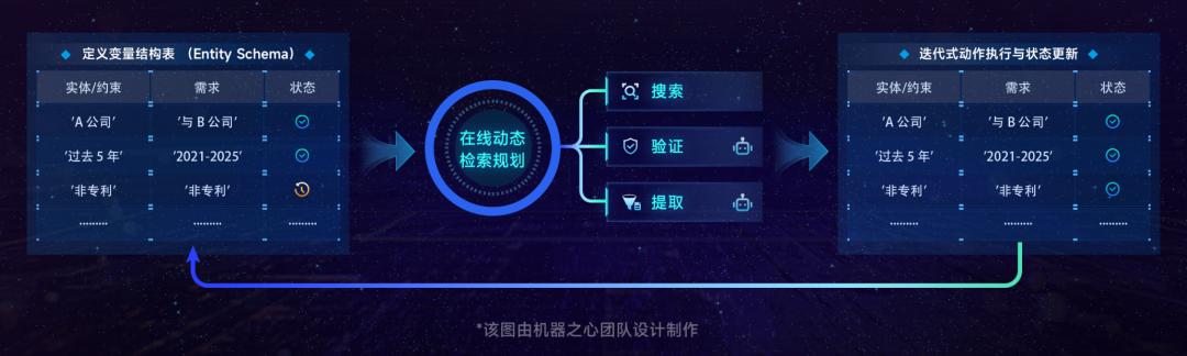 基于 openJiuwen 的上下文引擎,系统将问题状态统一建模为可持续更新的结构化上下文。每一次搜索动作都会触发状态增量更新,使实体关系与推理进展保持一致性与可追踪性。