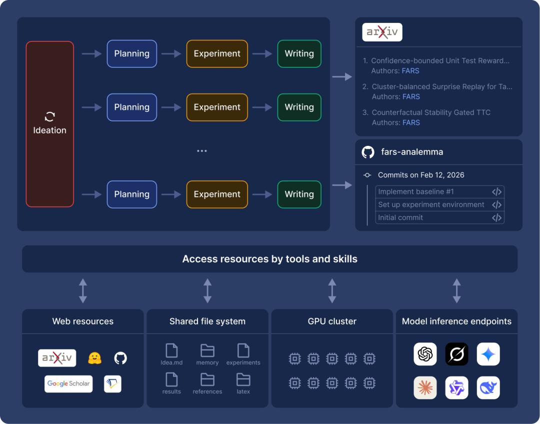 而 FARS (Fully Automated Research System) 是一个无人类干预、纯 AI 驱动的端到端研究系统,能够自动化地完成文献调研、假设生成、代码编写、实验执行、论文写作等科研全流程,在 AI4AI 领域是一个重要的里程碑。