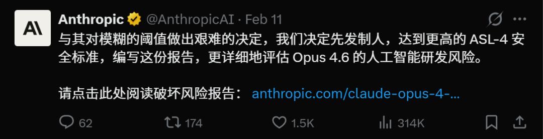 真正关键的一句话就是:「我们不认为它已经达到ASL-4级自主性风险阈值,但我们已经进入灰区。」