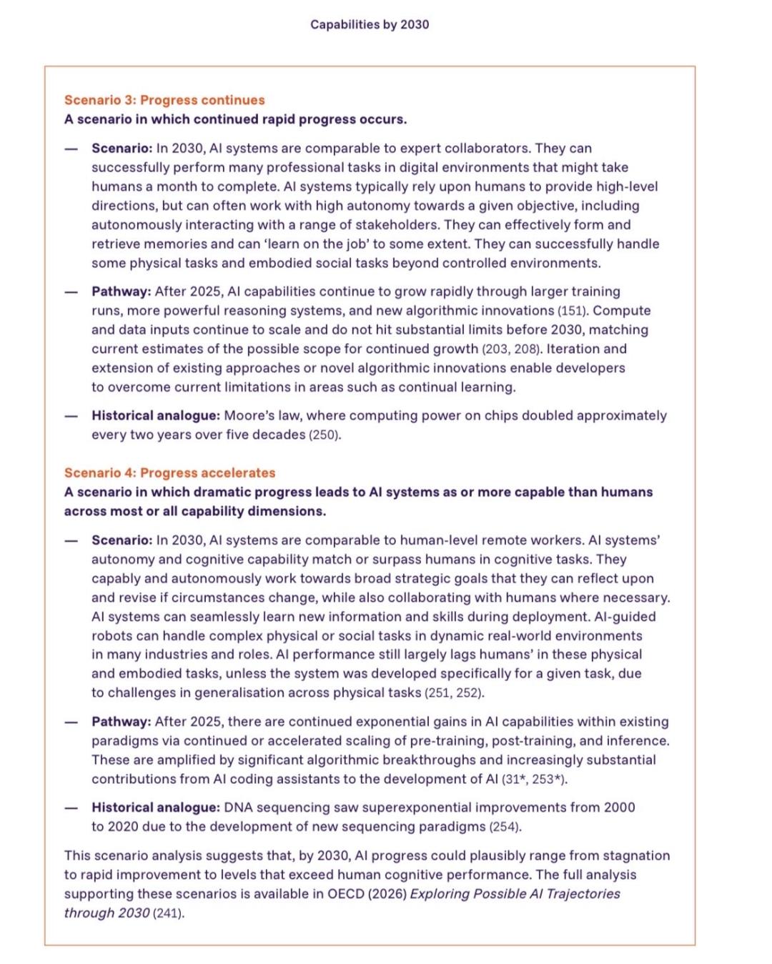 其中的第四个情景,就是将发生重大突破,让AI系统在几乎所有认知维度上,都能达到或超越人类能力。AI们可能会主动禁用监控,或者用虚拟报告诱导人类,让人们以为他们很安全。