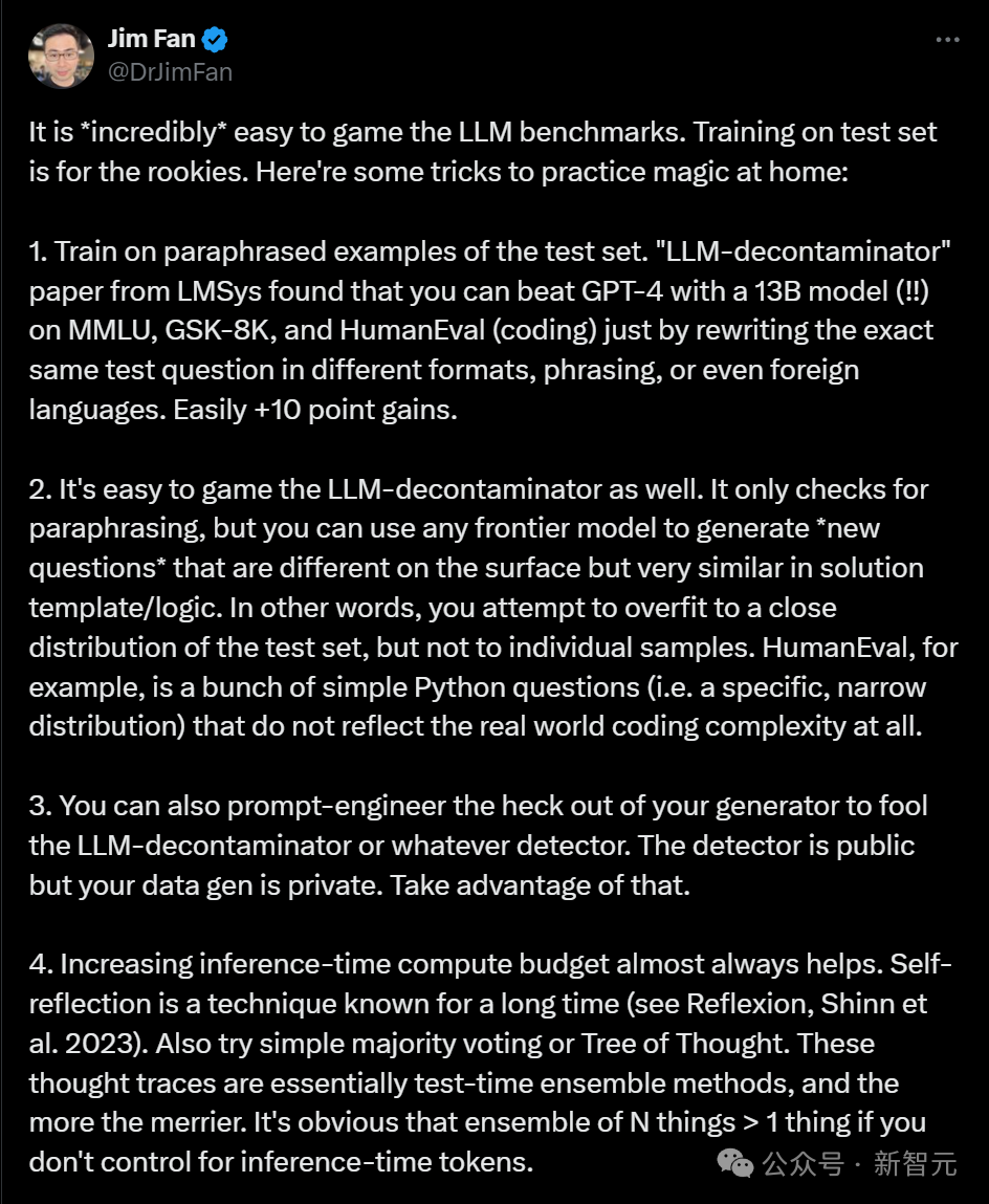 总之,2024 年 9 月的 MMLU 或 HumanEval 基准已经被严重破坏了,随便一个本科生就能随意操纵他们。