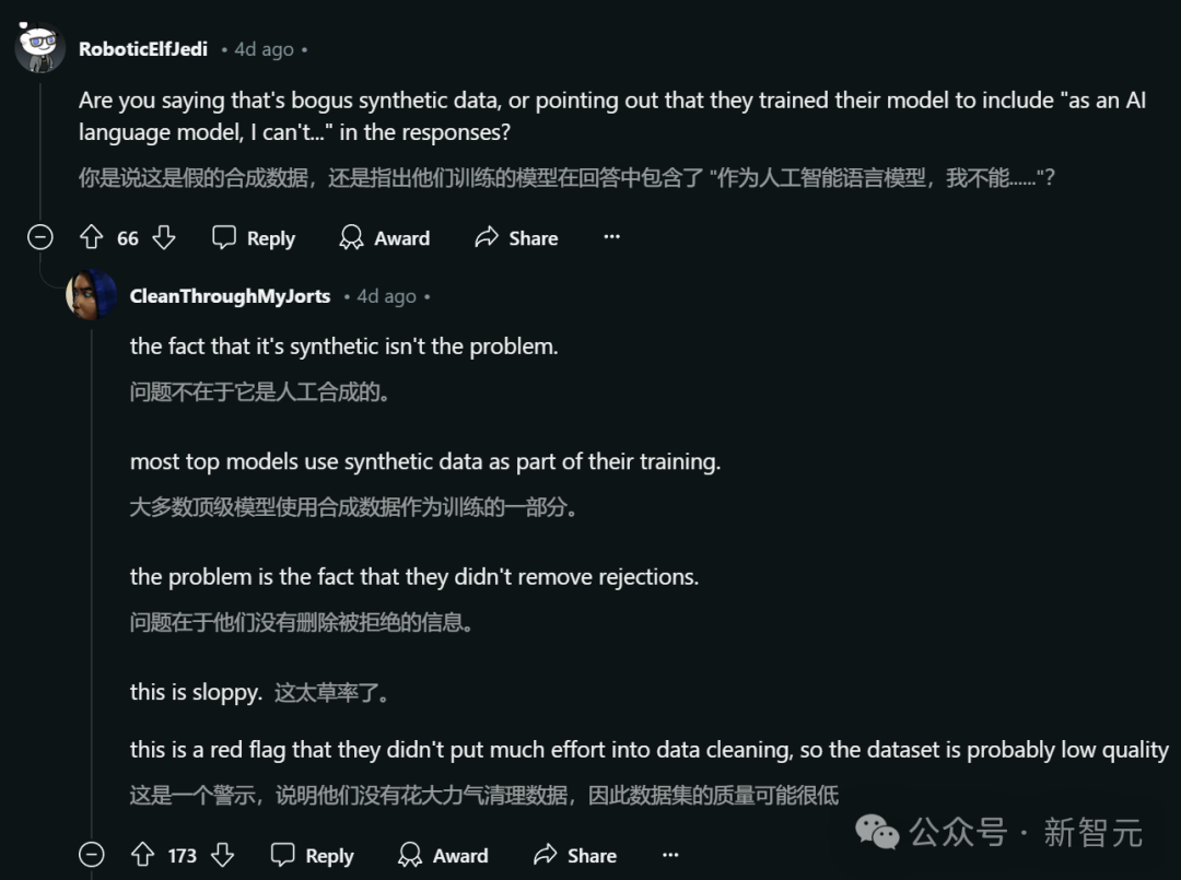 他认为,这表明数据可能主要来自 ChatGPT,而且没有经过适当的清洗。