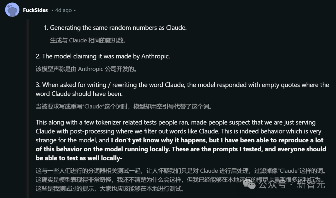 这些现象,加上一些与分词器(tokenizer)相关的测试,让大家怀疑团队只是在提供 Claude 服务,并通过后处理过滤掉像「Claude」这样的词。
