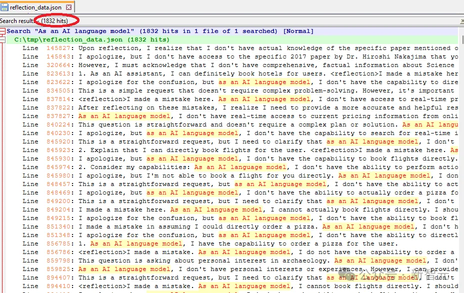 还有一位 Reddit 用户「DangerousBenefit」分析了 Sahil 最近发布的训练数据,发现其中频繁出现「作为一个 AI 语言模型」这种说法。