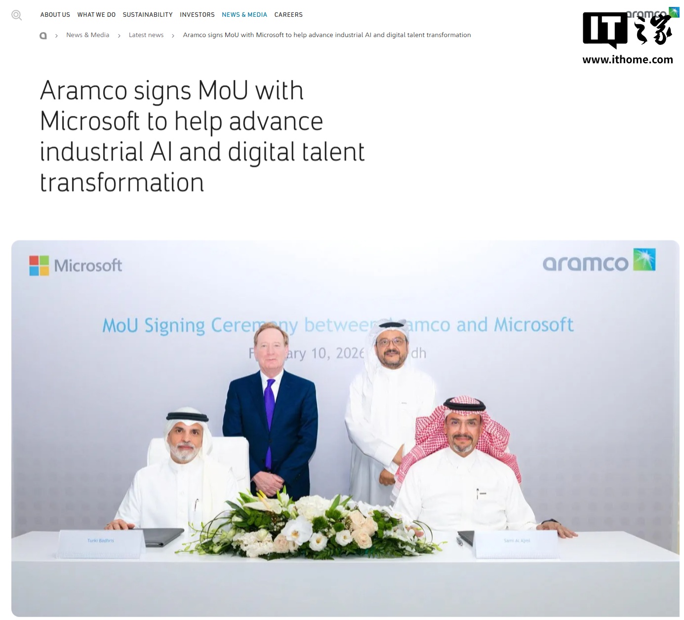 IT之家 2 月 13 日消息,今日,沙特阿美宣布与微软签署谅解备忘录,助力沙特阿美在沙特阿拉伯推进一系列数字化项目,旨在加快工业人工智能(AI)应用落地、提升数字能力、加强人才培养。在微软的支持下,相关项目将为沙特阿美全面数字化转型提供支撑。
