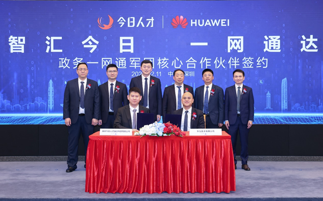 [中国,深圳,2026年2月11日] 华为技术有限公司(以下简称“华为”)与深圳今日人才信息科技有限公司(以下简称“今日人才”)在深圳举行政务一网通军团合作伙伴签约仪式。根据协议,双方将围绕“一网通办”“一网统管”等重点场景,联合构建智慧政务与城市治理解决方案,提升政务服务体验,服务全球城市数智化发展。