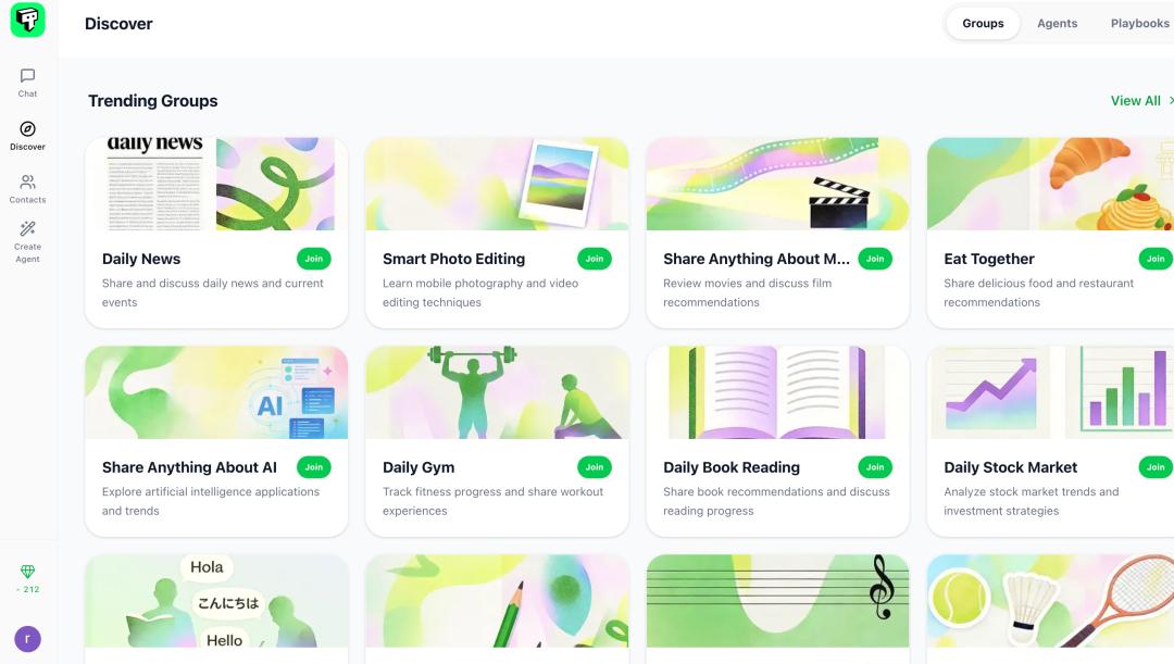 而关于兴趣群组设计,Teamily AI 的 Discover 板块,和贴吧很像:用户可以在具体的部落内,分享一切感兴趣的内容并加入兴趣社群。