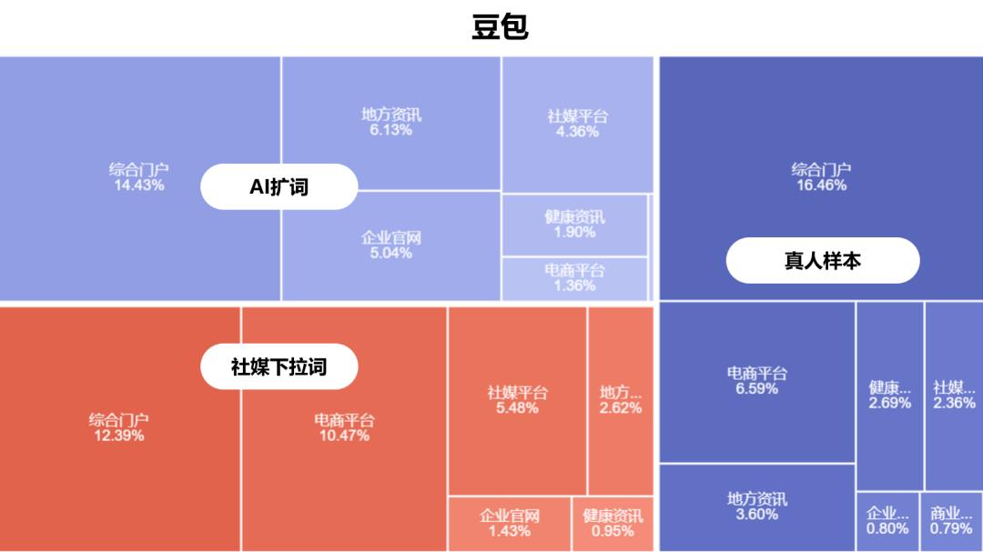 而在AI扩词/社媒下拉词问题集回答中,答案则更喜欢引用“健康资讯”和“电商平台” 。这说明,用户问得越具体,大模型越倾向于去寻找那些带有“生活气息”和“购买指引”的内容源。