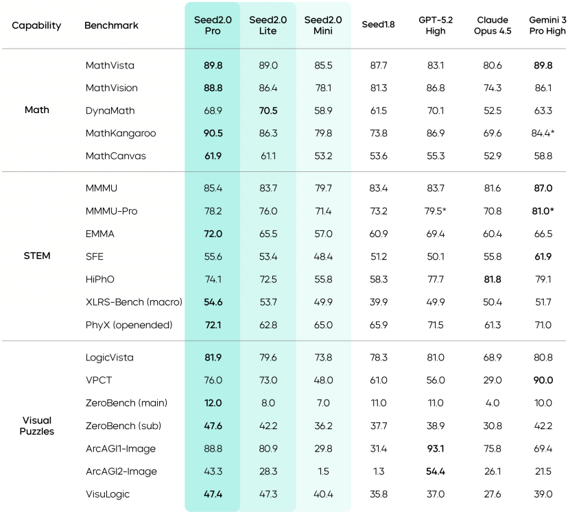豆包2.0在IMO、CMO 数学竞赛和ICPC编程竞赛中获得金牌成绩,在 Putnam基准测试上超越了Gemini 3 Pro。