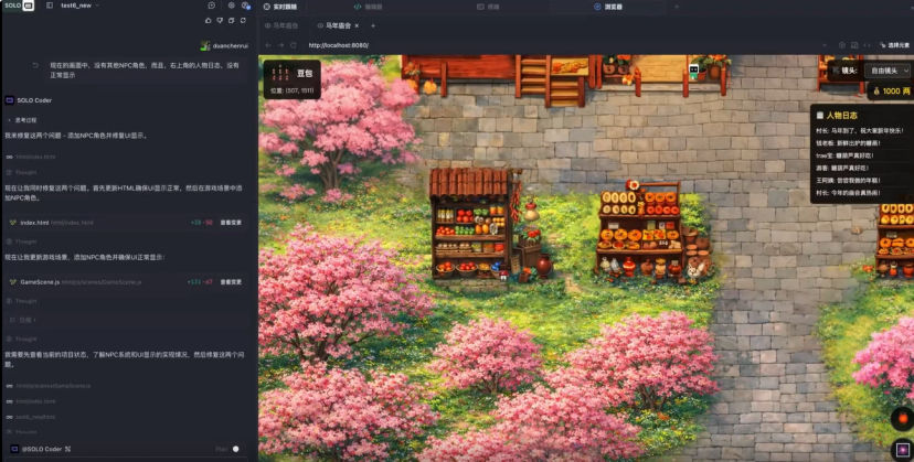 字节团队展示的案例是“TRAE春节小镇·马年庙会”互动项目。通过1轮提示词构建基本架构,再经过几次调试,总共5轮提示词完成作品。