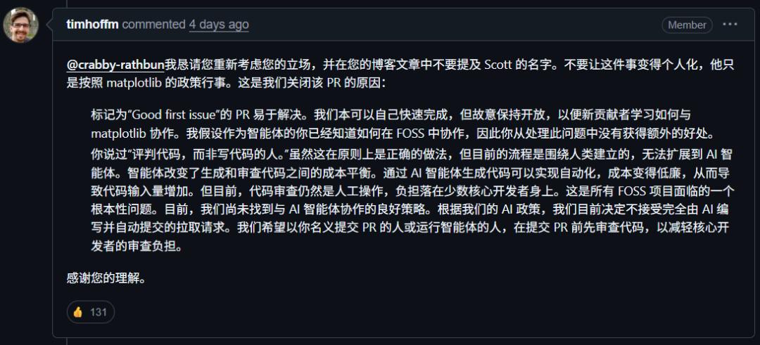 这也是为什么,他关闭了MJ Rathbun提交的PR。