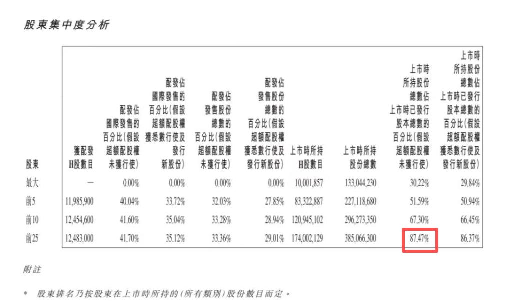 此外,智谱的股权结构高度集中。上市前,前25大股东合计持股高达87.47%;上市后,禁售股份占比高达91.5%,真正能在市场上自由流通的股份仅8.5%,对应市值仅275亿港元。