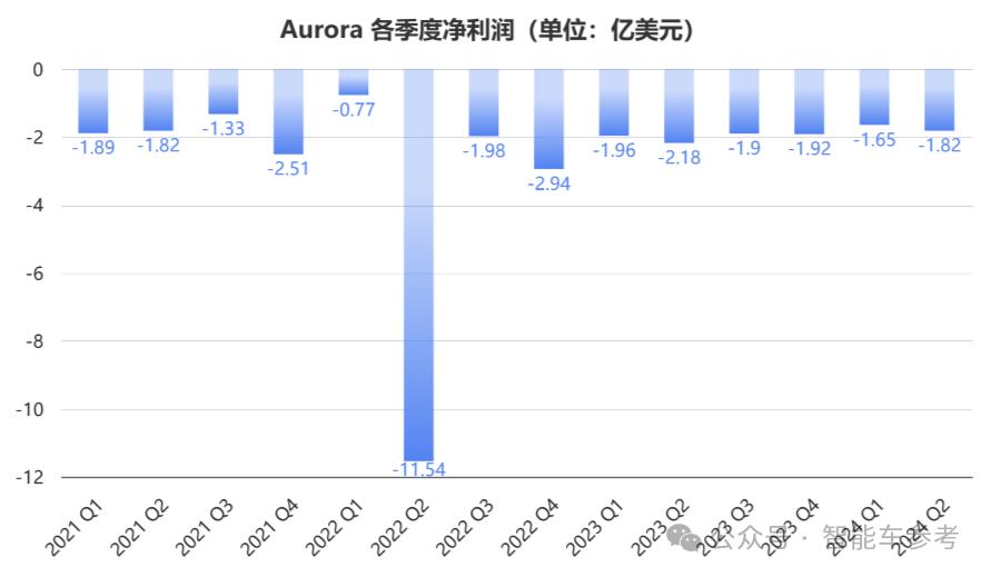 半年花掉9900万美元(约69615.8亿元)后,Aurora账上还剩下4.19亿美元(约29.5亿元)。