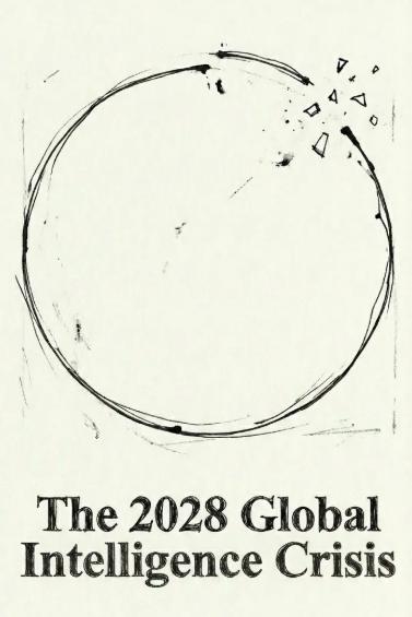 Citrini在这篇设定于2028年6月的场景推演文章中描绘了一幅无比暗淡的未来图景:AI智能的飞速进步极大地提高了生产力,但也使大量人力劳动变得多余——从而引发失业潮、消费支出崩溃。最终,AI技术变革将引发白领工作的“逐底竞争”(race to the bottom);人们对软件行业将被颠覆的担忧还远远不够;“全球智能危机”即将到来。