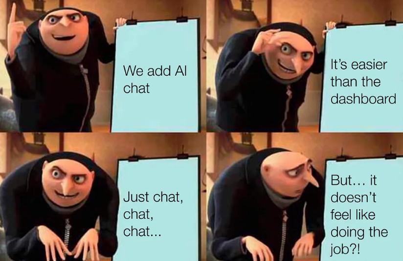 设计师回答这个问题时常用的指导原则是“在用户所在的地方满足他们的需求”,例如,如果用户在错误的地方寻找某个东西,就把它移到他们正在寻找的地方。然而,随着新的AI用户体验模式层出不穷,并且大多朝着基于意图的对话式交互或生成式用户界面发展,问题不再是“在哪里”,而是“如何做”。