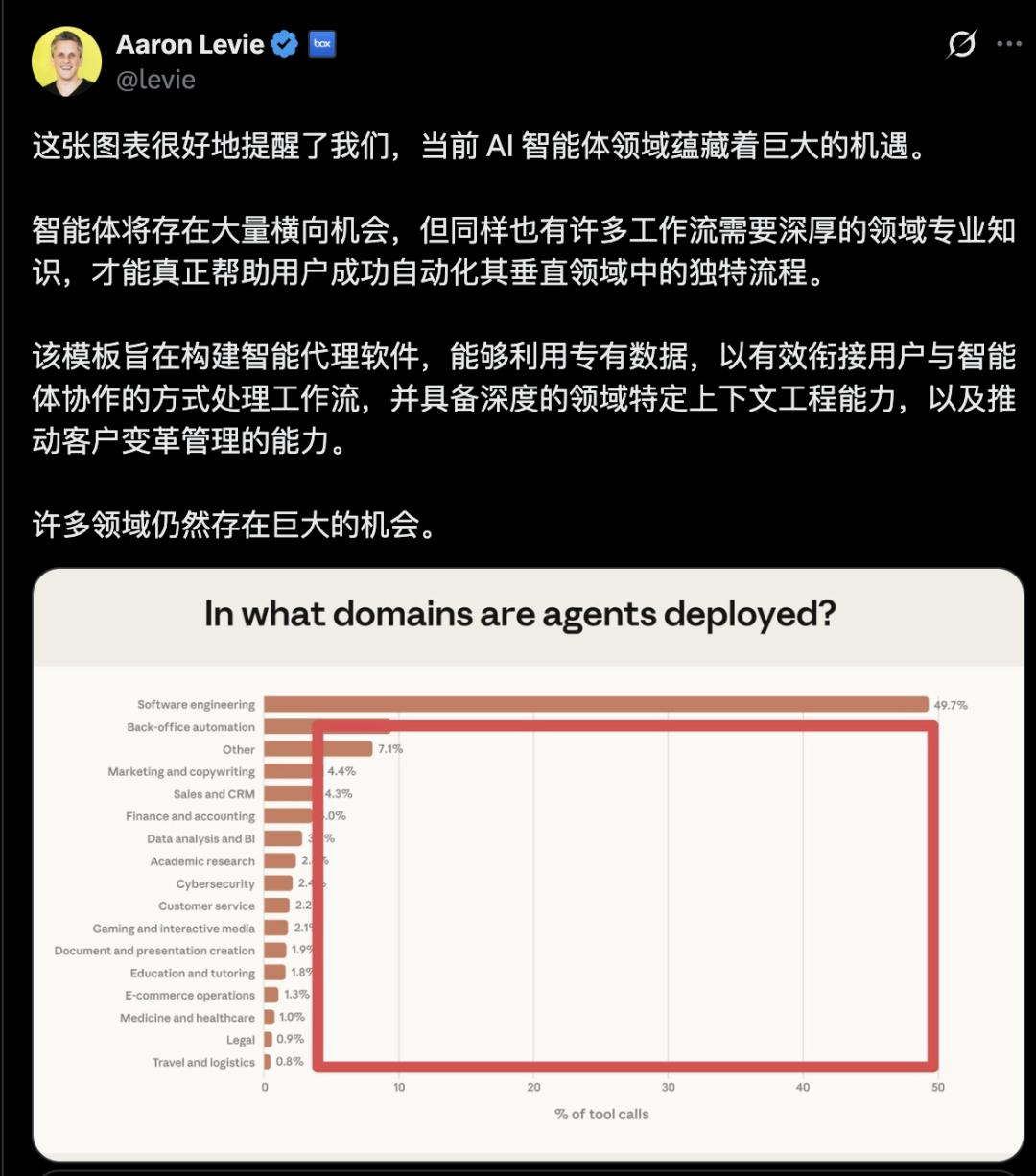 最近,Anthropic公布了一个数据:软件工程占约50%智能体工具API调用。