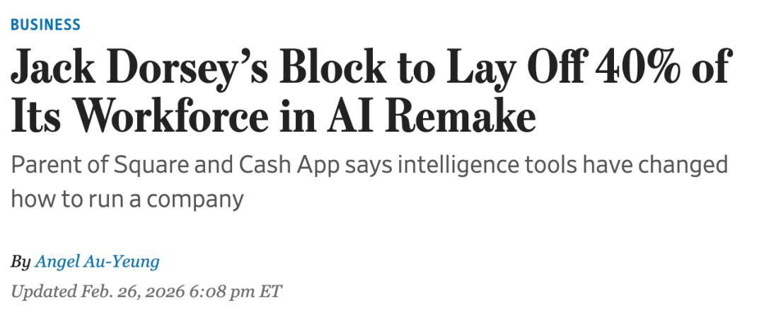 人类已无后路?今天,硅谷支付巨头Block暴裁40%员工,股价却疯涨25%。联创Jack Dorsey千字全员信:与其缓慢等死,不如用AI替代平庸打工人。
