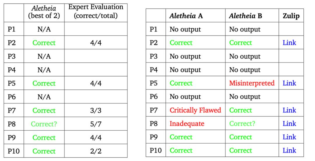 据该领域专家Tony Feng透露,在这次比赛里,除了Aletheia,根本没AI能接近正确答案。