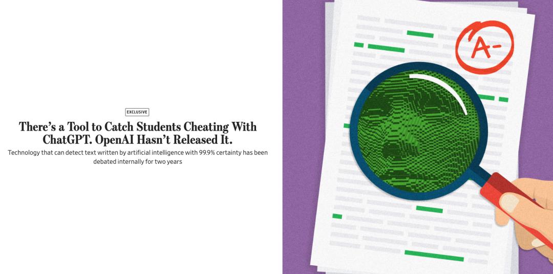 而学校几乎没有还手之力。各校花了大量经费采购 AI 检测软件,但研究表明市面上的检测工具基本不起作用。OpenAI 曾在内部开发出一种针对自家模型的文本水印技术,通过调整模型预测下一个词的概率分布,植入人类不可察觉但机器可检测的统计模式。据《华尔街日报》2024 年的报道,该技术内部评估有效性极高——但 OpenAI 最终以「可能影响用户体验」为由搁置了它。