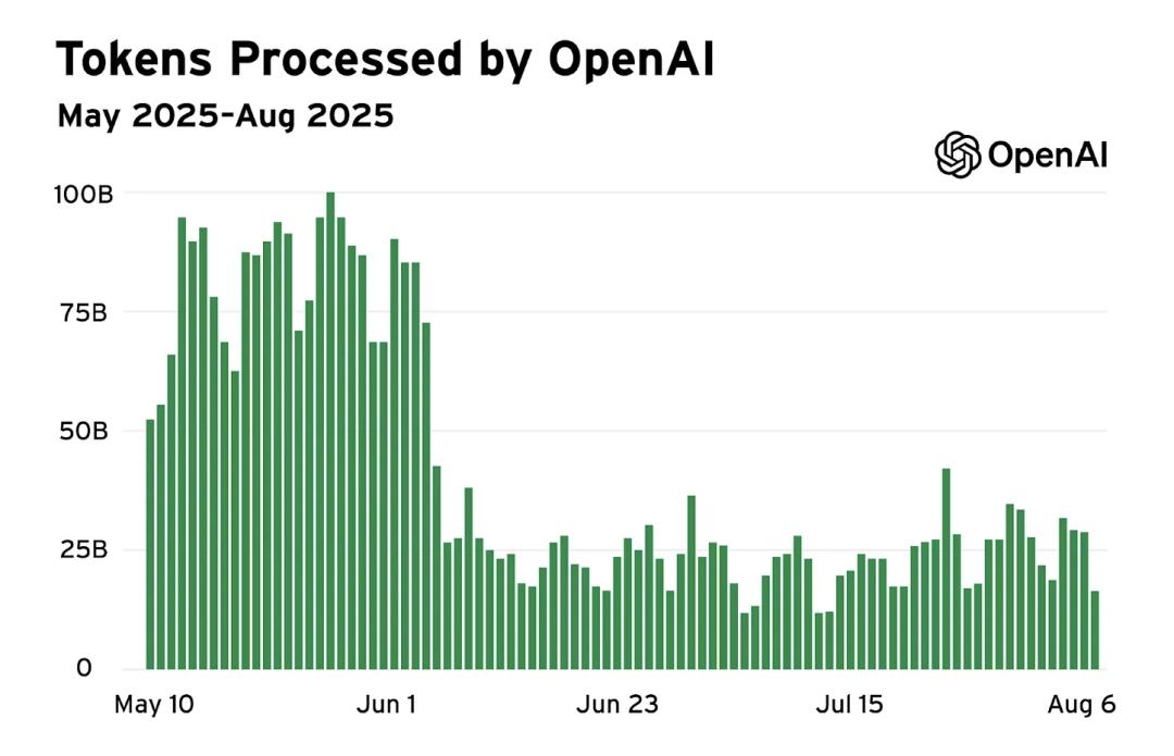 2025 年的数据显示,超过 90% 的美国大学生在学业中使用 AI,高中生的使用率也达到了 84%。OpenAI 自己的数据间接印证了这一点:去年暑假一开始,ChatGPT 的对话量就断崖式下跌。