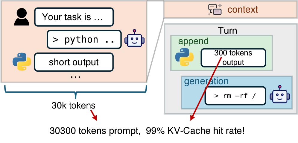 换句话说,智能体任务呈现出一种奇特的特征:多轮次、长上下文、短追加。