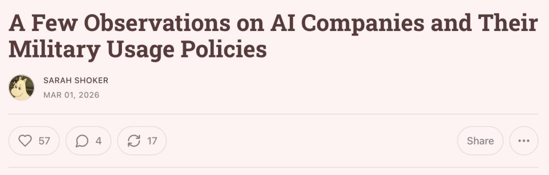 而不是在Anthropic因坚守原则被列入黑名单后,趁火打劫,成为那个接替他们的「军火承包商」。
